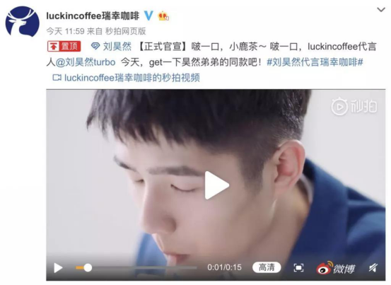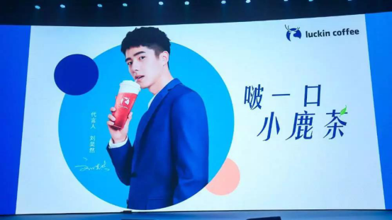 到了2019年7月,瑞幸不仅官宣了小鹿茶代言人“刘昊然”,还为小鹿茶开了一场发布会。