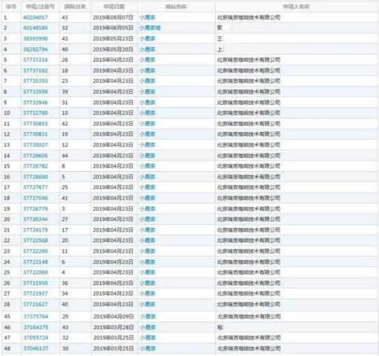 一项标榜“速度”的瑞幸,还是比不上山寨的“快”!瑞幸“小鹿茶”商标被人抢注了!