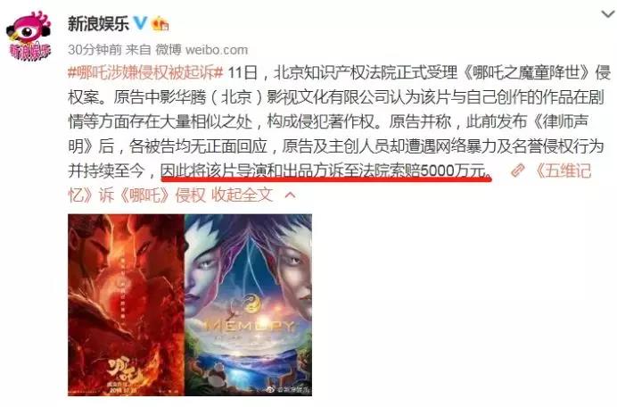 《哪吒》涉嫌侵权被起诉,原告索赔5000万并发声:愿天下“无贼”