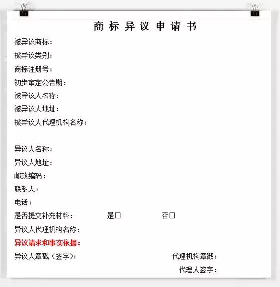 (5)异议人的异议理由,比如说:商标缺乏显著性、商标存在近似情况、自己是商标的在先权利人、自己的商标是驰名商标等。
